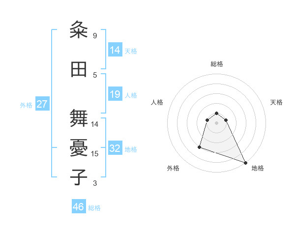 粂田 舞憂子さんの天格は14画の1点!