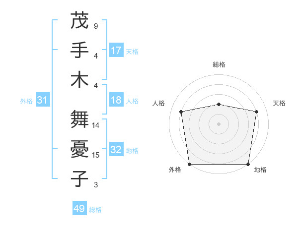 茂手木 舞憂子さんを姓名の画数から五運を鑑定