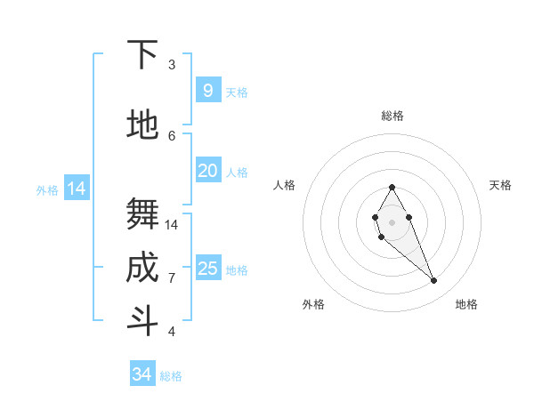下地 舞成斗さんを姓名の画数から五運を鑑定