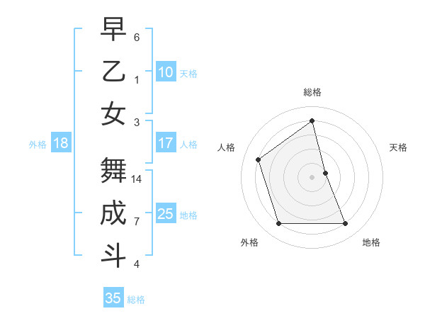 早乙女 舞成斗さんの総格は35画の4点