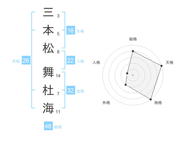 三本松 舞杜海さんの総格は48画の4点!