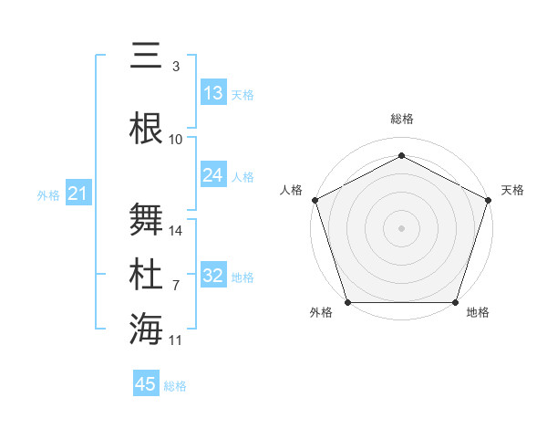 三根 舞杜海さんを姓名の画数から五運を鑑定