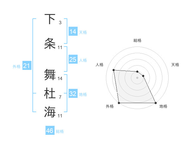下条 舞杜海さんを姓名の画数から五運を鑑定