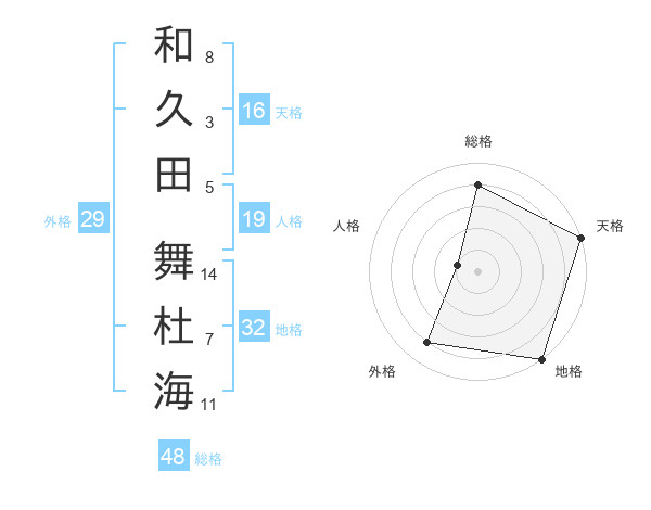 和久田 舞杜海さんを姓名の画数から五運を鑑定