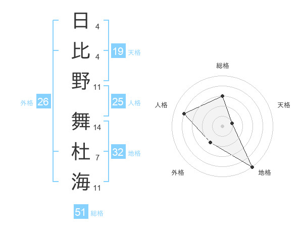 日比野 舞杜海さんを姓名の画数から五運を鑑定