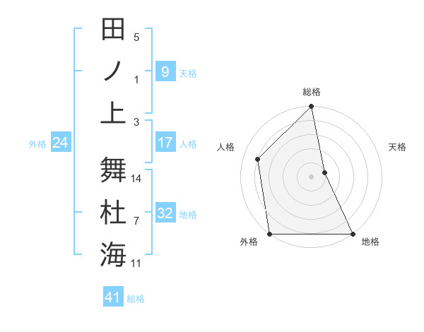 田ノ上 舞杜海さんを姓名の画数から五運を鑑定