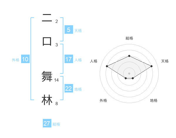 二口 舞林さんの総格は27画の3点!