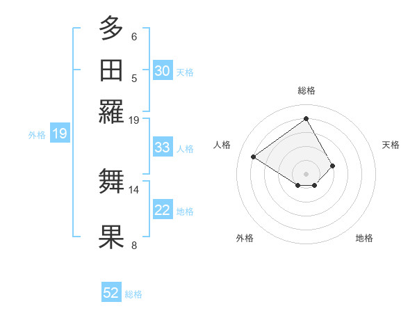 多田羅 舞果さんの総格は52画の4点!