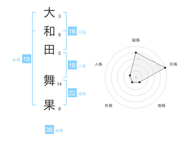 大和田 舞果さんの総格は38画の4点