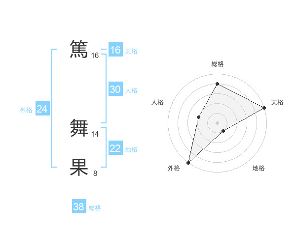 篤 舞果さんの総格は38画の4点!