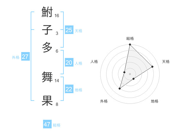 鮒子多 舞果さんの総格は47画の5点!