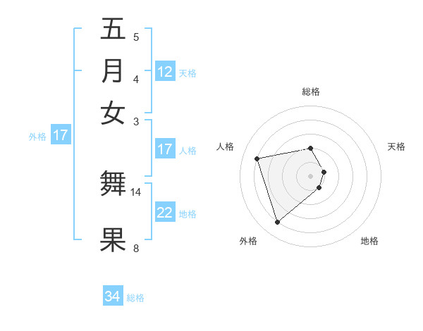 五月女 舞果さんの総格は34画の2点!