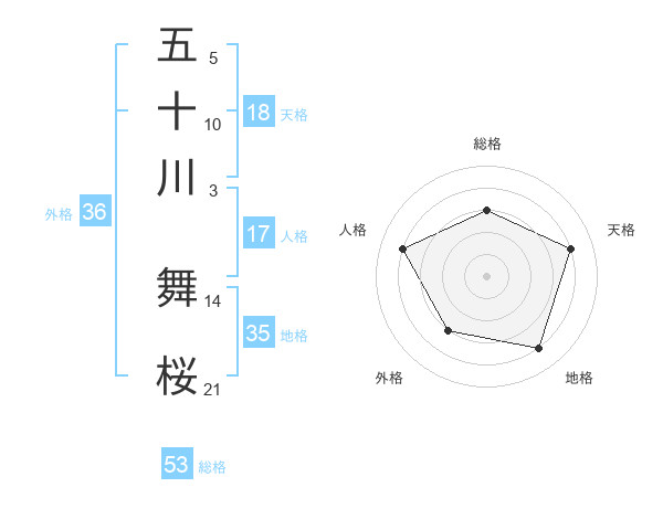五十川 舞桜さんの地格は35画の4点!