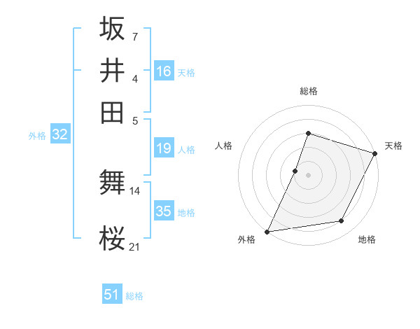 坂井田 舞桜さんを姓名の画数から五運を鑑定