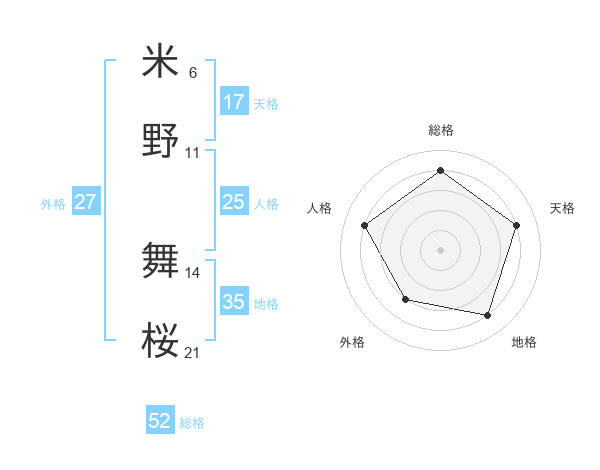 米野 舞桜さんを姓名の画数から五運を鑑定