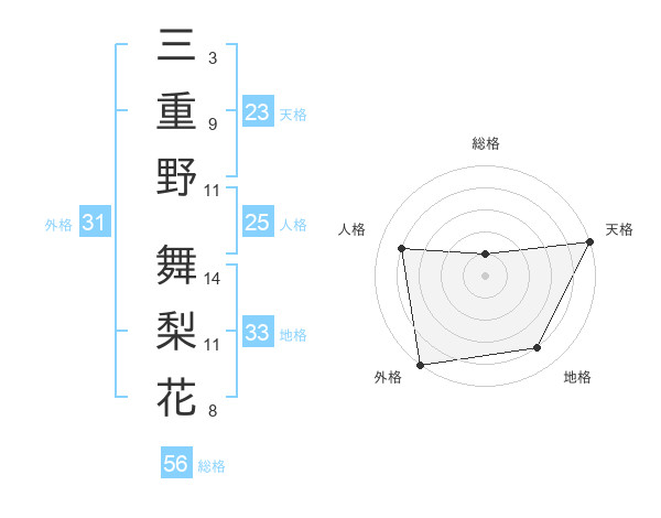 三重野 舞梨花さんの地格は33画の4点!