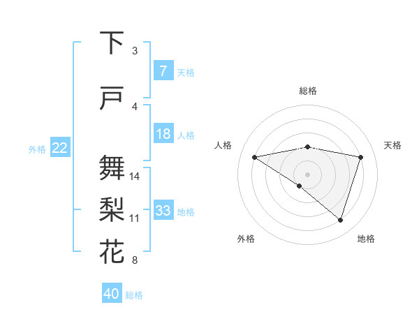 下戸 舞梨花さんの外格は22画の1点!
