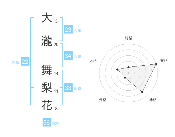 大瀧 舞梨花さんの地格は33画の4点!