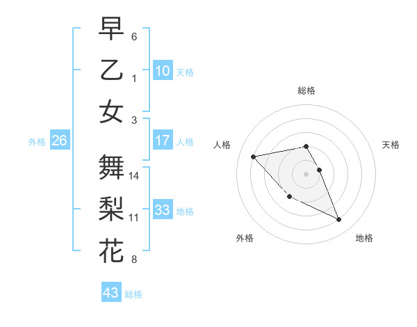 早乙女 舞梨花さんを姓名の画数から五運を鑑定
