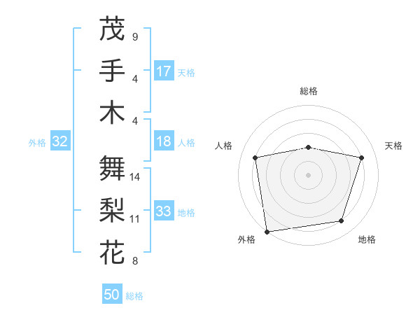茂手木 舞梨花さんを姓名の画数から五運を鑑定