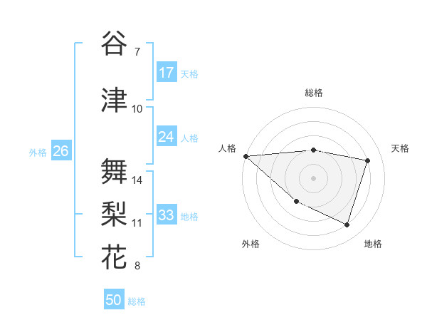 谷津 舞梨花さんを姓名の画数から五運を鑑定