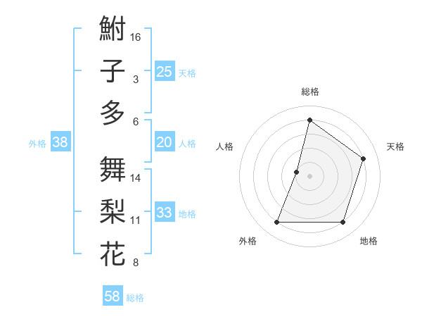 鮒子多 舞梨花さんを姓名の画数から五運を鑑定