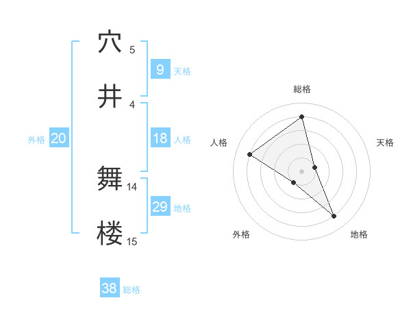 穴井 舞楼さんの総格は38画の4点!