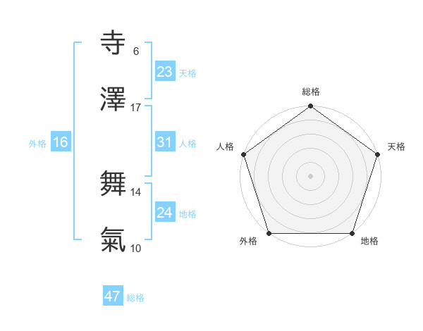 寺澤 舞氣さんの総格は47画の5点!