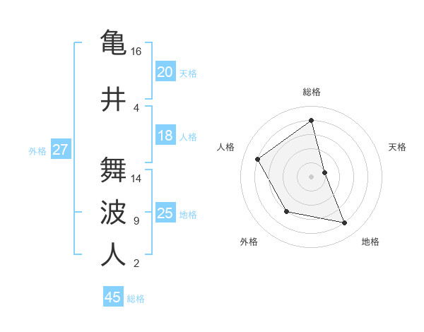 亀井 舞波人さんの総格は45画の4点!