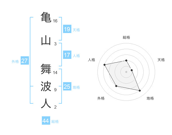 亀山 舞波人さんを姓名の画数から五運を鑑定