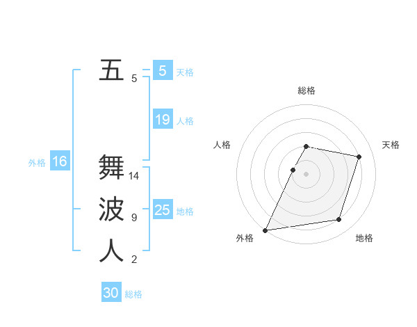 五 舞波人さんの総格は30画の2点!