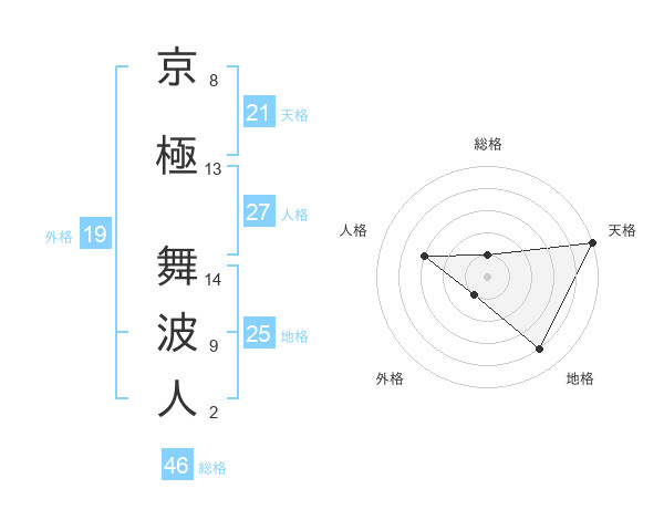 京極 舞波人さんを姓名の画数から五運を鑑定