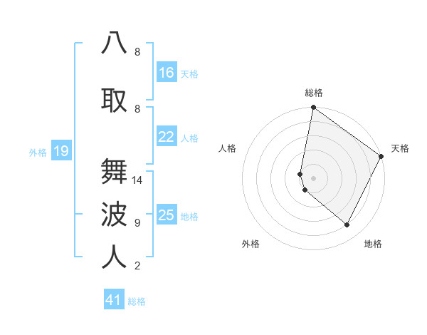 八取 舞波人さんの総格は41画の5点!