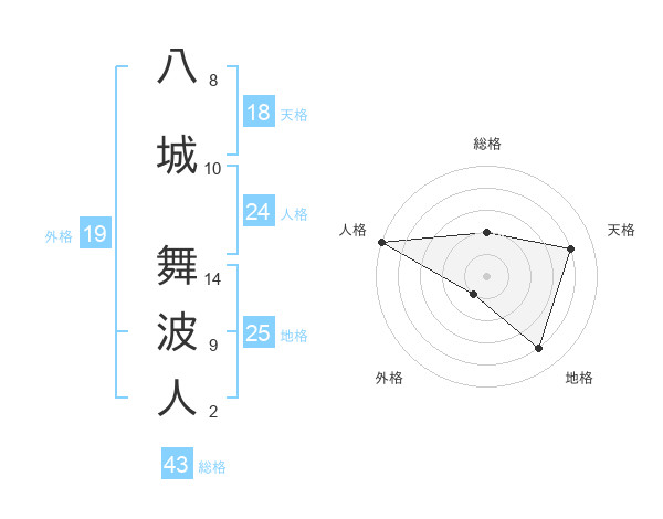 八城 舞波人さんの総格は43画の2点!