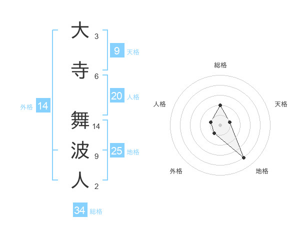大寺 舞波人さんを姓名の画数から五運を鑑定