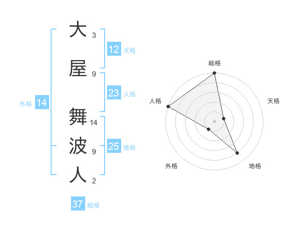 大屋 舞波人さんを姓名の画数から五運を鑑定