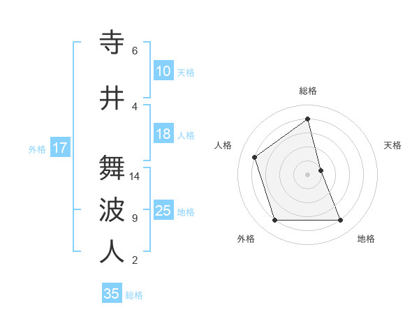 寺井 舞波人さんを姓名の画数から五運を鑑定