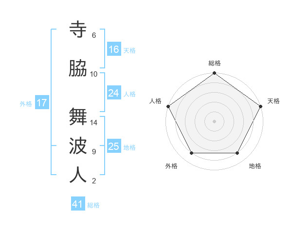 寺脇 舞波人さんを姓名の画数から五運を鑑定