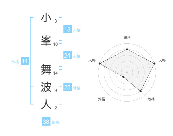 小峯 舞波人さんを姓名の画数から五運を鑑定