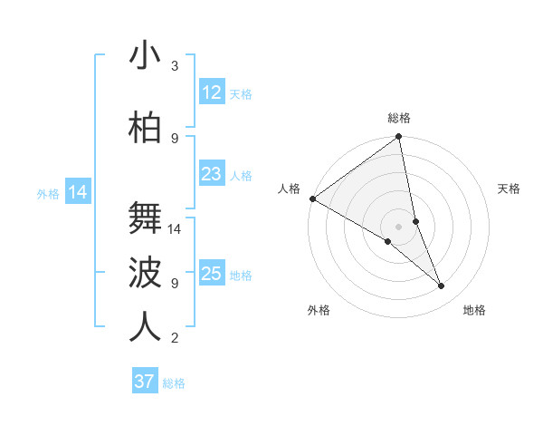 小柏 舞波人さんの総格は37画の5点!