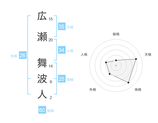 広瀬 舞波人さんの総格は60画の1点!
