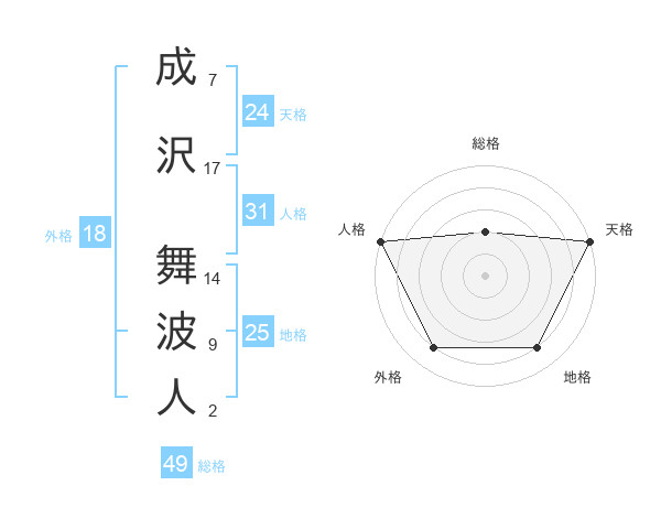 成沢 舞波人さんの総格は49画の2点!