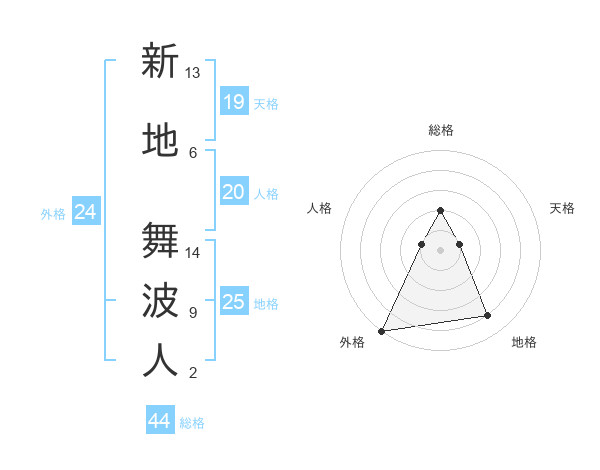 新地 舞波人さんの総格は44画の2点!