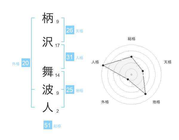 柄沢 舞波人さんの総格は51画の3点!