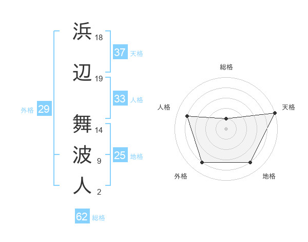 浜辺 舞波人さんを姓名の画数から五運を鑑定