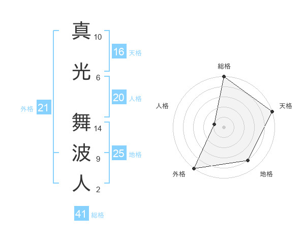 真光 舞波人さんを姓名の画数から五運を鑑定