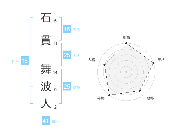 石貫 舞波人さんを姓名の画数から五運を鑑定