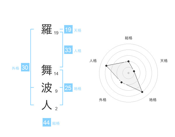 羅 舞波人さんの総格は44画の2点!