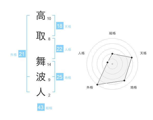 高取 舞波人さんの総格は43画の2点!