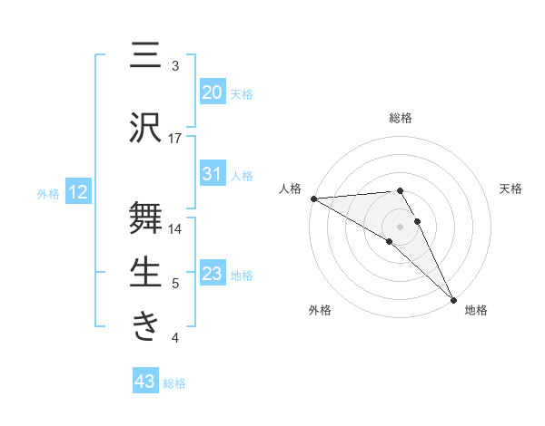 三沢 舞生きさんを姓名の画数から五運を鑑定